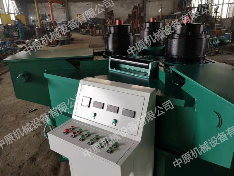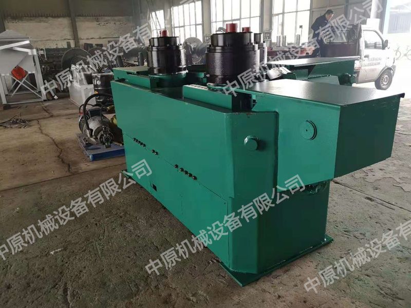 該機(jī)為叁輥型材卷圓機(jī),集機(jī)電一體。電機(jī)輸出的較高轉(zhuǎn)速通過傳動(dòng)裝置(聯(lián)軸器,液壓馬達(dá),液壓油缸,齒輪等)轉(zhuǎn)換成所需的大扭矩低轉(zhuǎn)速,帶動(dòng)兩主動(dòng)輥實(shí)現(xiàn)旋轉(zhuǎn)運(yùn)動(dòng),為型材行走提供扭矩。兩個(gè)主動(dòng)輥中心距可調(diào),被動(dòng)輥通過液壓油缸前進(jìn)、后退實(shí)現(xiàn)位移,來控制直徑大小。三個(gè)工作輥成等腰三角形分布,通過調(diào)整移動(dòng)輥實(shí)現(xiàn)這三個(gè)點(diǎn)形成的弧線達(dá)到所需彎曲半徑,借助被動(dòng)輥的壓緊及兩主動(dòng)輥的旋轉(zhuǎn)運(yùn)動(dòng),使型材經(jīng)過多次連續(xù)彎曲,產(chǎn)生永久性塑性變形,用于常溫狀態(tài)下將型材卷制成圓形,弧形等工件。微信圖片_20180727095250